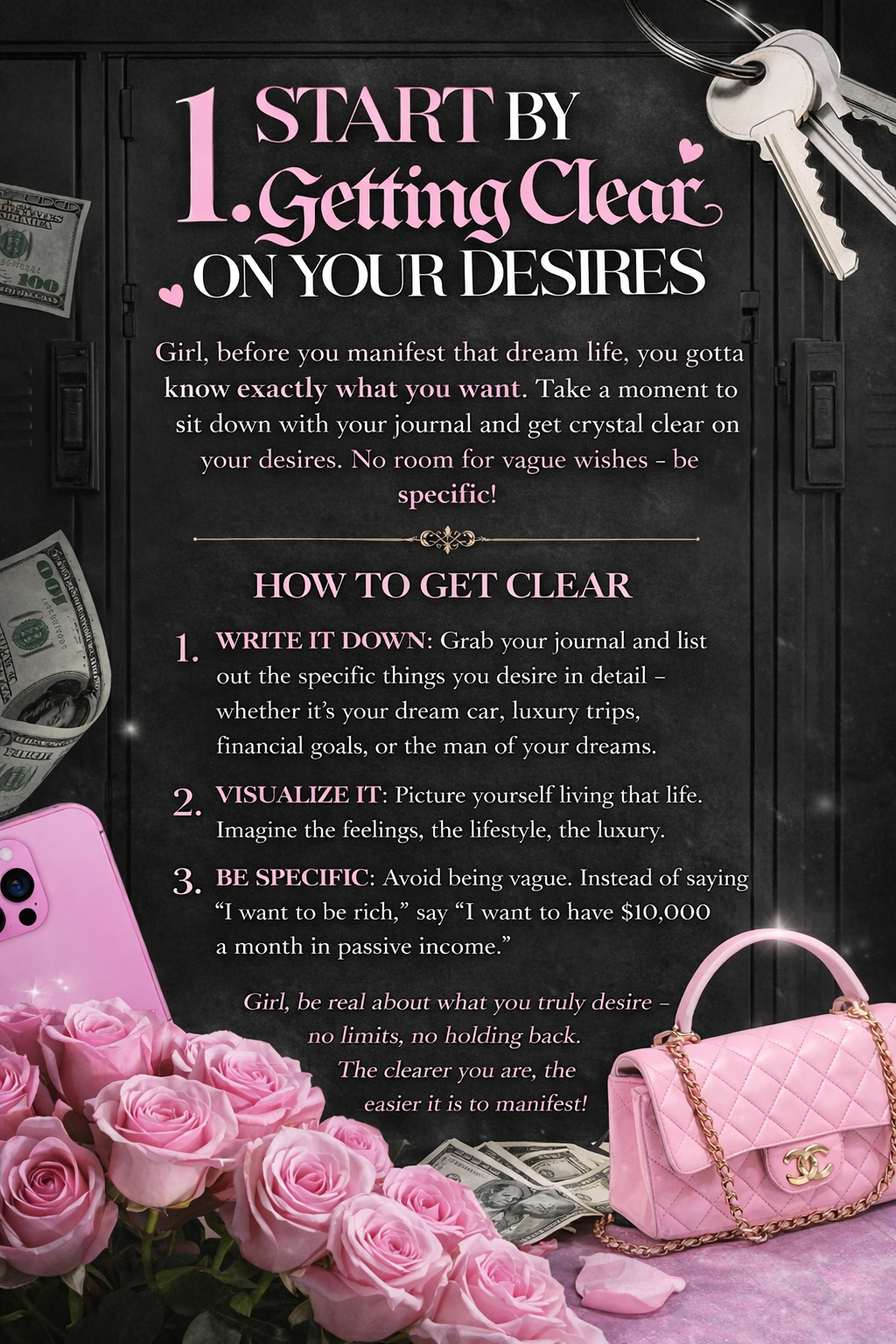 If you’re tired of feeling stuck, unmotivated, or inconsistent, Girl, Manifest That Sh*t is your step-by-step glow-up guide that helps you get clear on what you want, shift your mindset, and take real action—daily. This e-book blends manifestation + confidence building + money mindset with practical tools like a 30-day challenge, planner pages, and habit trackers so you can stay focused and actually follow through.